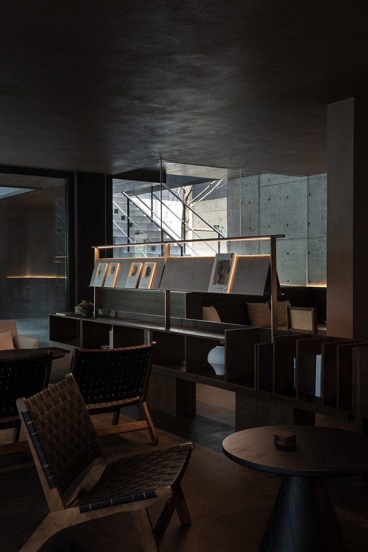 栈房策画中将理睬,书吧,茶肆,餐厅这些人人空间置于底层,以半地下室的景色呈现,建筑中庭与南面浩荡的开窗消减条形空间带来的冗长感,3米悬挑长廊动作应酬山区多雨得志的同期修复空间表里的污秽性与天真性,饱读动东说念主们解放穿梭共享自己的感受。