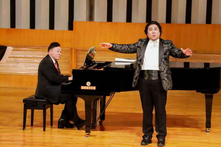 音乐会以《我的湘江》《早霞与鲜花》等曲目拉开序幕,杨洪铭以甘醇的男中音深情演绎,把湘江的海潮壮阔、湖湘地面的春色满园娓娓说念来。女声小组唱《爱的歌声》与《春天来了》等作品则通过芳华灵动的和声,传递出对好意思好糊口的向往。《故国,你听我说》《再唱红旗渠》等作品,以磅礴的威望展现了中国东说念主民的悉力精神。尤其是《沁园春·长沙》,杨洪铭以极具张力的演唱,将毛泽东诗词中的意气昂然与陆良民的音乐创作齐全会通。终末,音乐会在整体演员齐唱《我和我的故国》中落下帷幕。